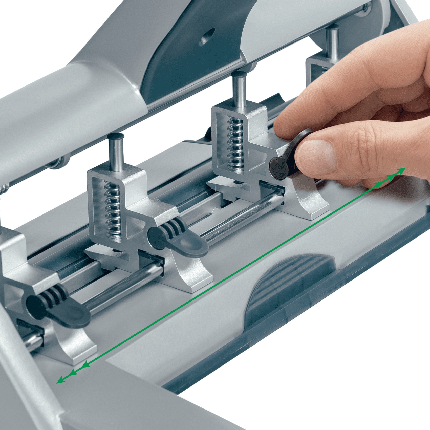 Blokada ramienia pozwala przechowywac dziurkacz z maksymalnie obnizonym ramieniem.