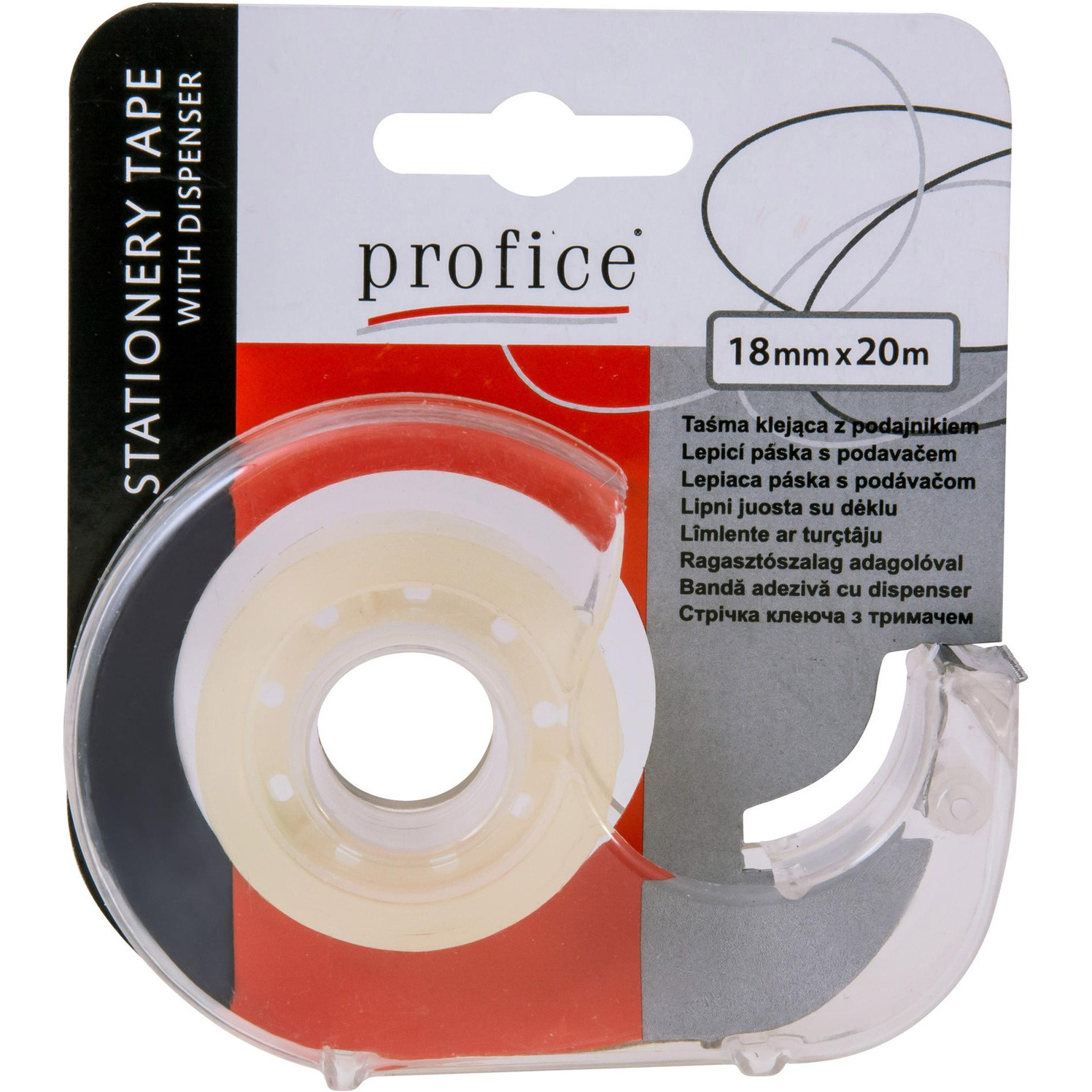 Taśma klejąca Profice z wygodnym plastikowym podajnikiem. Bazowana na dobrej jakości kleju akrylowym. Bezbarwna, o szerokości 18 mm, i długości 20 m. Podajnik wyposażony w metalowe ząbki ułatwiające precyzyjne odrywanie kawałków taśmy. Po skończeniu rolki taśmy, możliwość łatwej wymiany na nową. Opakowanie na blistrze 1 szt.
