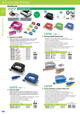 − średnica dziurek 5,5 mm, rozstaw dziurek 80 mm − stosowanie zszywek Leitz, które są mocne